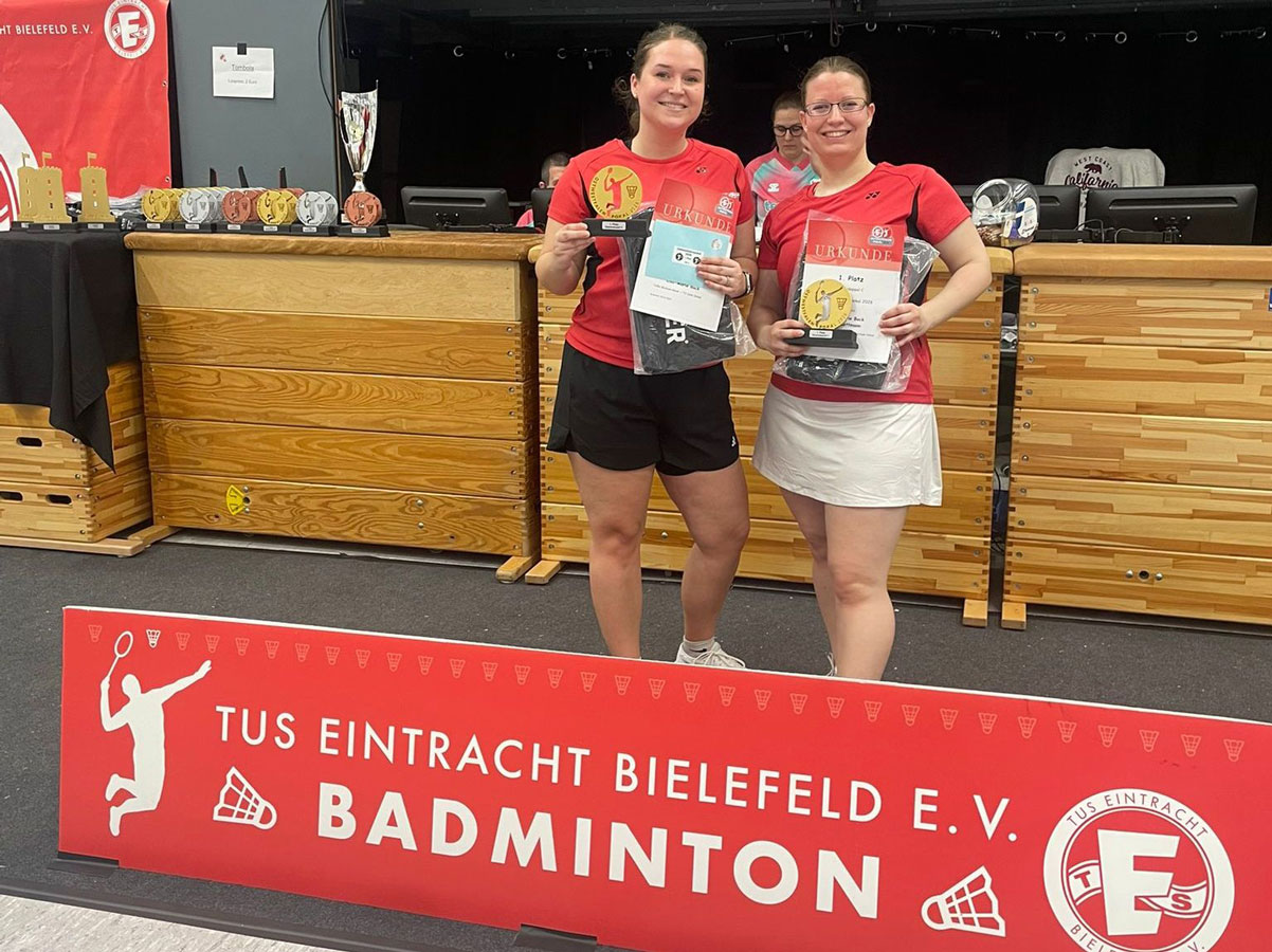 Großer Erfolg für TuWa-Badmintonspielerin Lina Kottmann, die zusammen mit ihrer Partnerin Lisa-Marie Bock (TV Jahn Oelde) im Damendoppel den Ostwestfalenpokal des TuS Eintracht Bielefeld gewonnen hat.