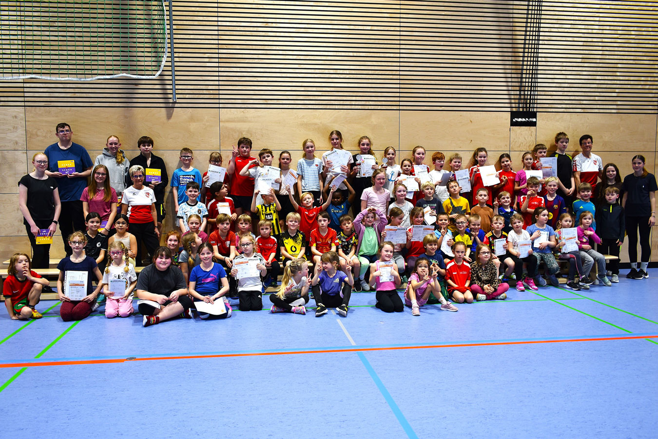 Der TuWa Bockum-Hövel hat in der neuen Sporthalle der Sophie-Scholl-Gesamtschule die Kinder- und Jugendsportabzeichen verliehen. In der Altersklasse zwischen sechs und elf Jahren wurden insgesamt 80 Kinder ausgezeichnet (4 Bronze, 40 Silber, 36 Gold) und bei den älteren Kids zwischen elf und 17 Jahren erhielten 34 die Ehrungen (3 Bronze, 10 Silber, 21 Gold), welche von Ludger Tröger (Sportabzeichenobmann des TuWa) überreicht wurden.