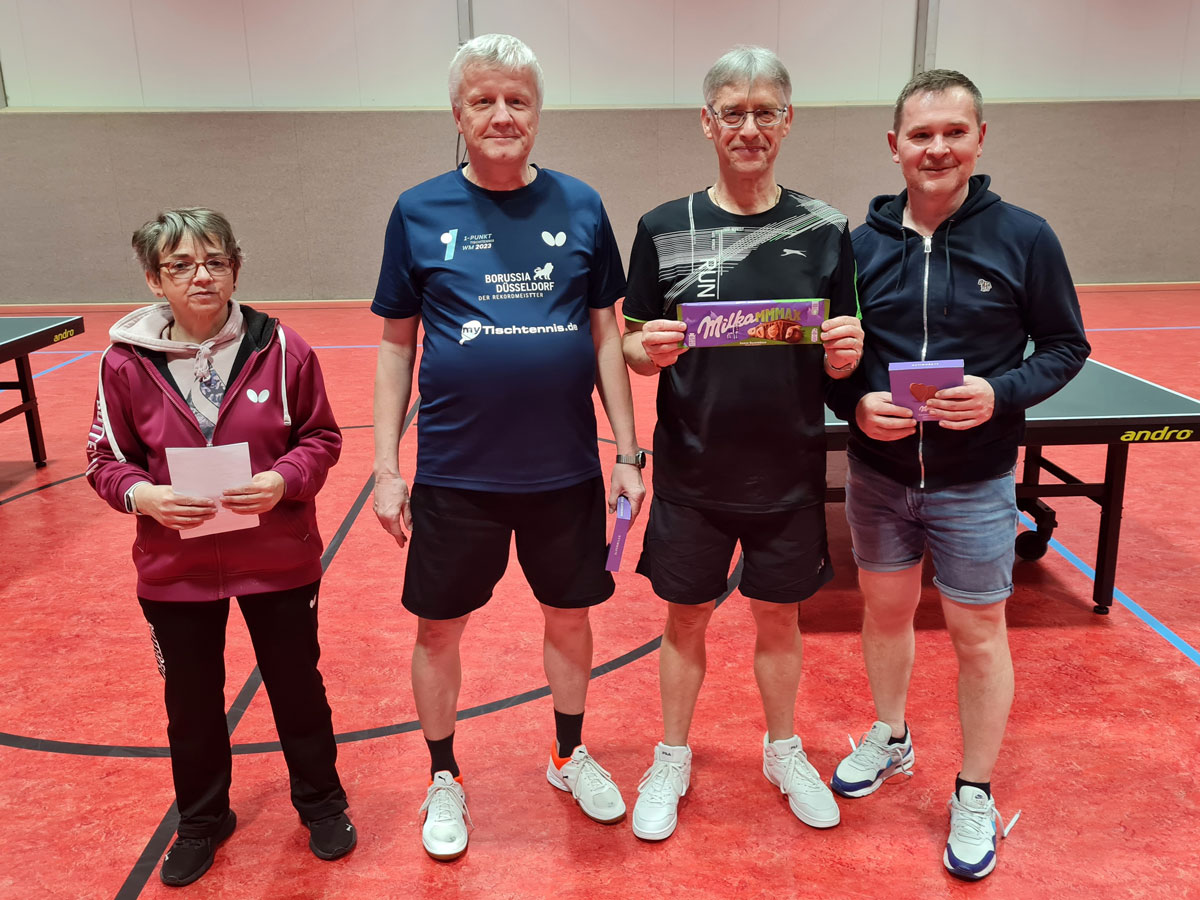 Bei den Tischtennis-Vereinsmeisterschaften des TuWa Bockum-Hövel, die von Dajana Gizdic, David Miszczak und René Staar organisiert wurden, nahmen am 4. Mai insgesamt 17 Aktive in der TuWa-Halle am Hallohpark teil.