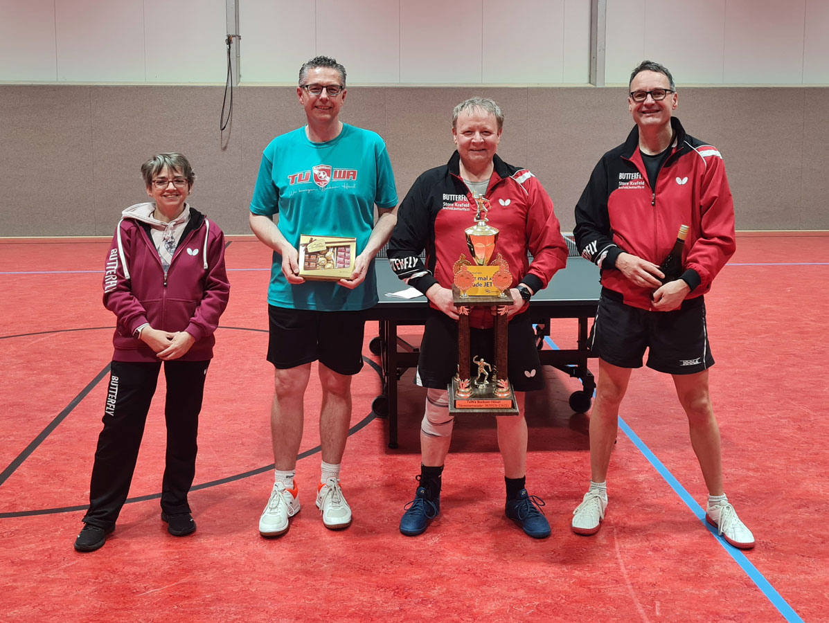 Seinen zweiten Titel des Tages errang Andreas Idczak im Doppel, wobei in dieser Konkurrenz jeweils einem gesetzten Akteur ein Spieler zugelost wurde, an der Seite von Ferdun Kedik im Finale gegen David Neufeld und Karl Franke. Nach einem schönen Wettkampf ließen die TuWaner den Abend mit leckeren Würstchen und Steaks vom Grill sowie verschiedenen Salaten ausklingen.