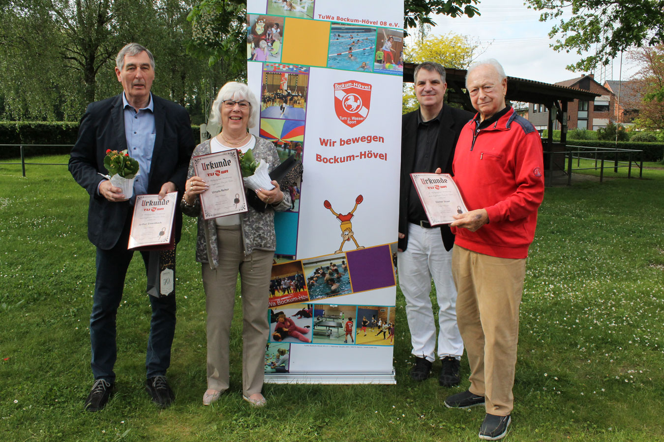 Schon 70 Jahre im TuWa sind Arthur Ensenbach, langjähriger Handball- Abteilungsleiter, sowie Dieter Staar, ebenfalls aus der Handballabteilung, sowie Ursula Reher, langjähriges Vorstandsmitglied, jahrelang beim TuWa-Karneval auf der Bühne und bis heute noch aktiv beim Frauenturnen und mit vielen Auszeichnungen von verschiedenen Verbänden bedacht.