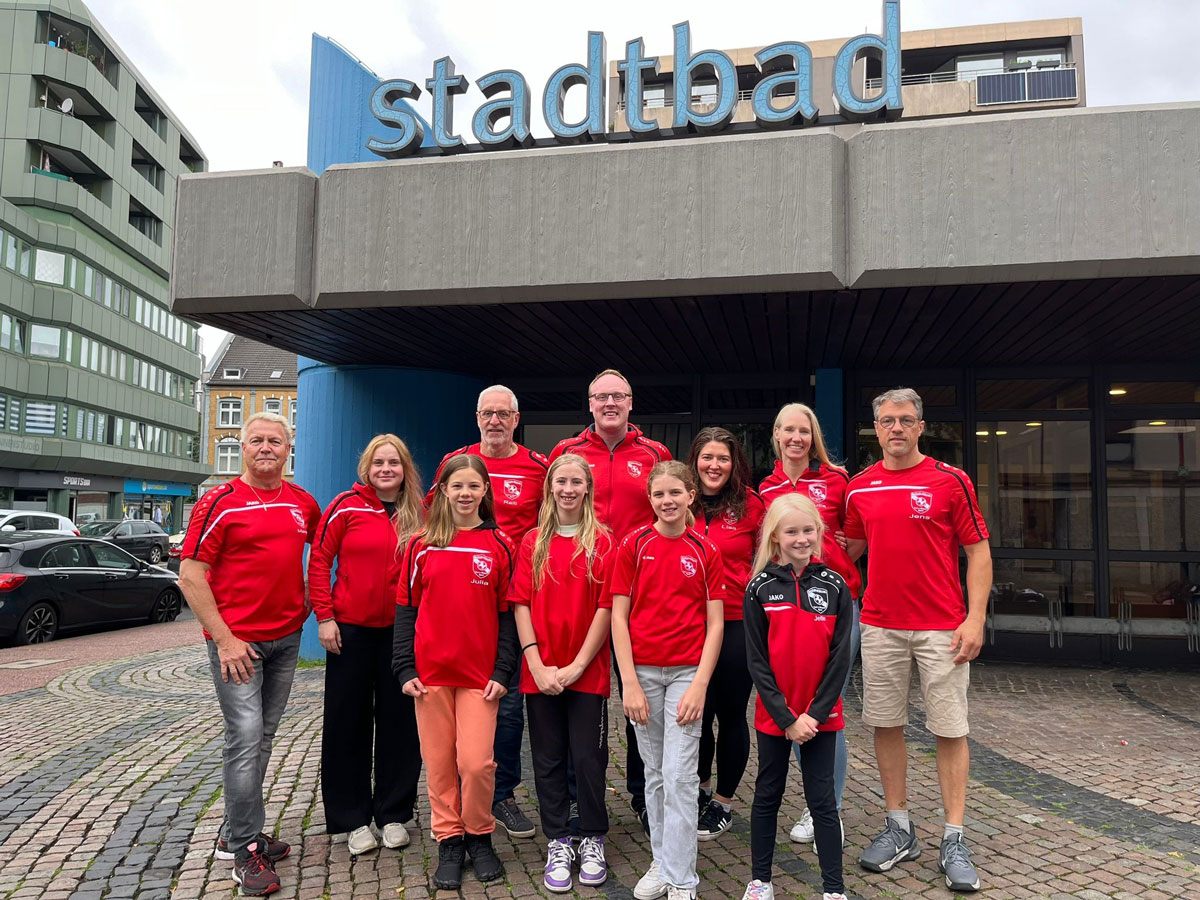 Am vergangenen Samstag startete der TuWa Bockum-Hövel erfolgreich bei den NRW-Mehrkampf-Meisterschaften in Neuss. Anders als gewohnt wurde das Kunstspringen und die schwimmerischen Disziplinen in unterschiedlichen Bädern durchgeführt. 10 Aktive der Schwimmabteilung gingen an den Start. Dabei drei junge Nachwuchstalente. Josie Gutowski, jüngste Teilnehmerin (AK 10/11), sicherte sich direkt bei ihrem ersten 5-Kampf das oberste Podest und erkämpfte sich mit 30,525 Punkten den NRW-Meistertitel. Ebenso war es für Lilli Lagoda und Franziska Schmidt, beide AK 12/13, ein Debüt im schwimmerischen Mehrkampf. Lilli holte sich mit starken 42,682 Punkten die Bronzemedaille vor ihrer Vereinskollegin Franziska mit 38,272 Punkten. Josie, Lilli und Franziska schwammen in allen drei schwimmerischen Disziplinen neue Bestzeiten und zeigten zwei saubere Grundsprünge vom 1m-Brett, die mit hohen Bewertungen belohnt wurden.