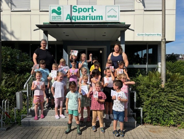 50 Kinder haben mit großem Erfolg an den Ferienschwimmkursen zur Wassergewöhnung bis hin zum Seepferdchen teilgenommen. Unter fachkundiger Leitung von Steffi Gromann und Andrea Sievert haben die Kinder Ängste vor dem Wasser, erste Schwimmbewegungen und das "Seepferdchen" positiv abgelegt.
