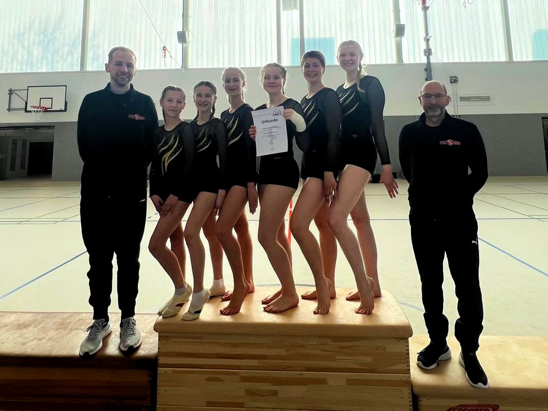 Mit einem souveränen Sieg beim Aufstiegswettkampf am 8. März in Werl konnten sich die Turnerinnen des TuWa Bockum-Hövel für die kommende Saison einen Platz in der Gauklasse II sichern. Die Mannschaft um Leana Gallus, Isabelle Kötting, Lilli Lagoda, Jule Sadowsky, Pauline Aistermann und Franziska Funck erturnte sich mit einem großen Vorsprung von 2,85 Punkten und insgesamt 144,55 Punkten den ersten Platz und ließ damit sieben weitere Mannschaften hinter sich.