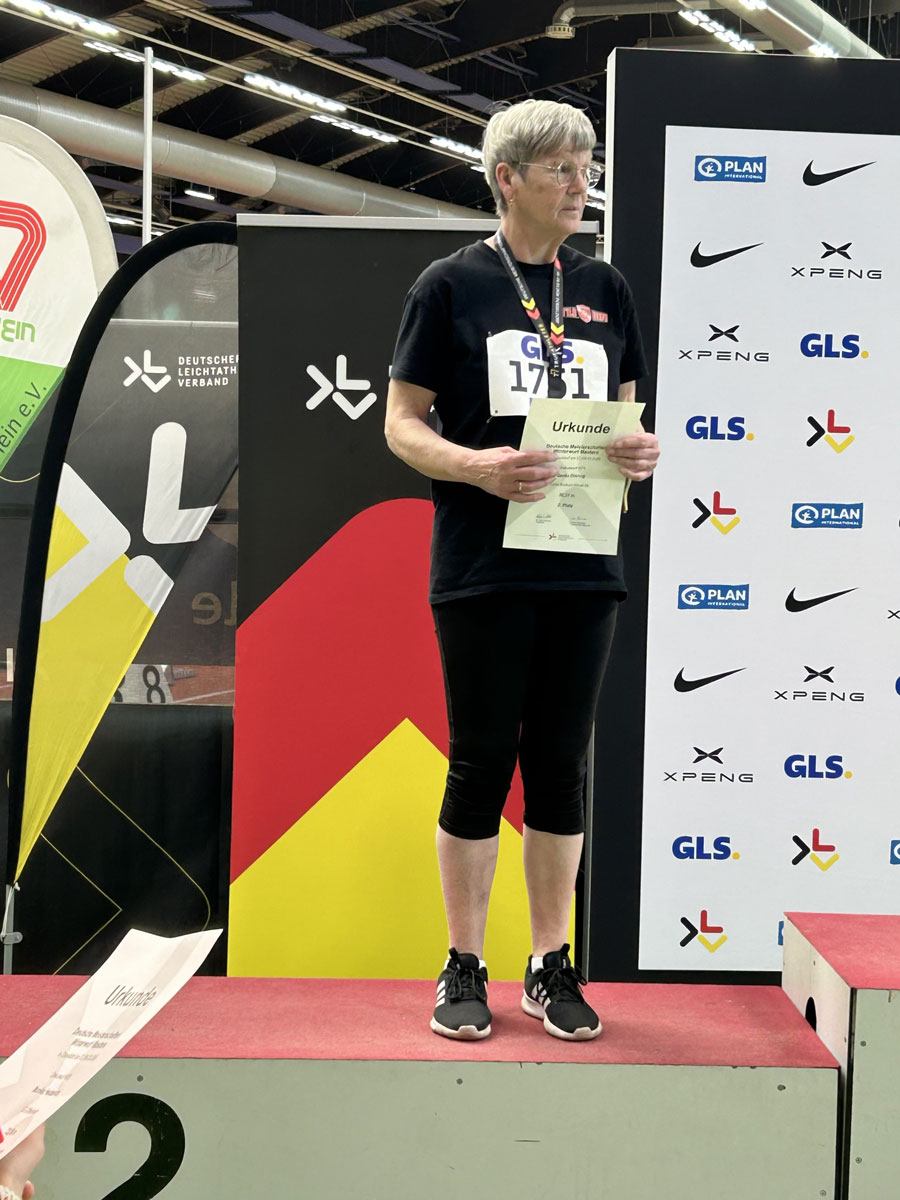 Für Gerda Giering vom TuWa Bockum-Hövel gab es zwei Podestplätze.Zweite wurde sie mit dem Diskus, den sie 20,37m weit warf, beim Kugelstoß wurde Sie mit 7,84 m Dritte.